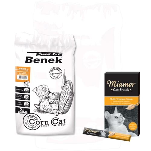 > 15 zł taniej! 10/25/35 L Benek + Miamor Cat Snack pasta, 24 x 15 g – CORNCat naturalny 35 l (ok. 22,5 kg) + Miamor Cat Snack pasta multiwitaminowa