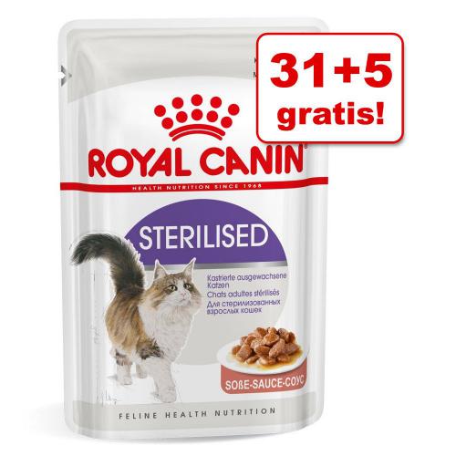 > 31 + 5 gratis! Royal Canin mokra karma dla kota, 36 x 85 g – Indoor Sterilised w sosie